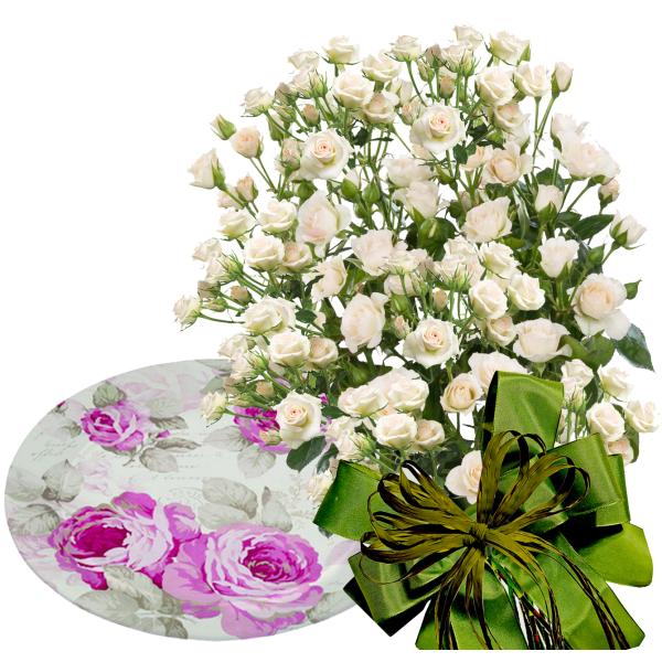 Прекрасен букет от бели спрей рози, с красива панделка.