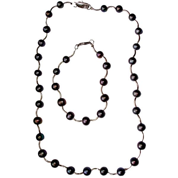 Заповядайте в нашия бижутерски магазин за култивирани перли и изберете огърлица и гривна от тъмно лилави култивирани перли