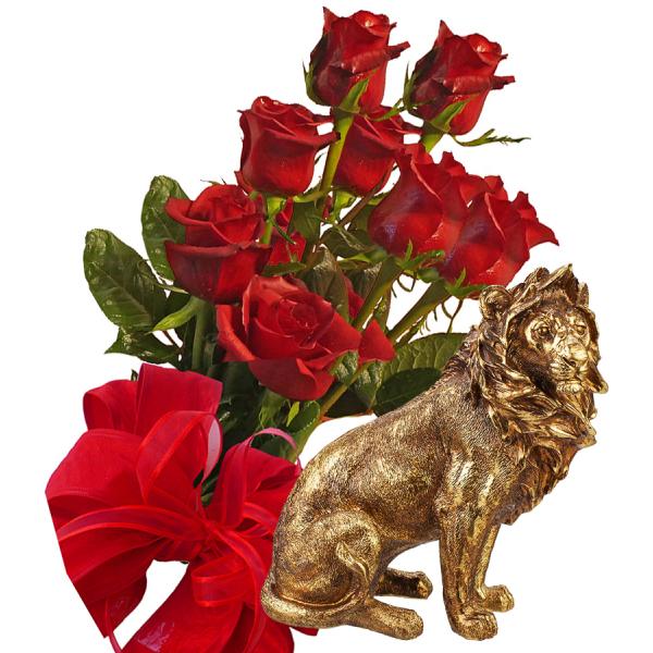 Букет от рози и Статуетка лъв - Подаръци онлайн