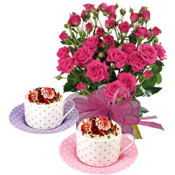 Bouquet of spray roses and Porcelain coffee cups - Pearl collection