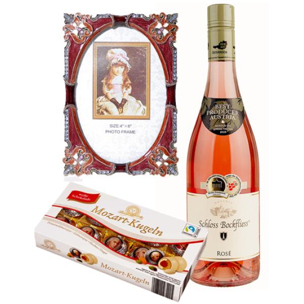 Фоторамка с инкрустации, вино и бонбони