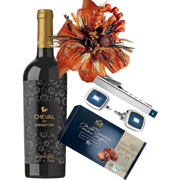 Комплект Копчета за ръкавели и Игла за вратовръзка, вино и бонбони
