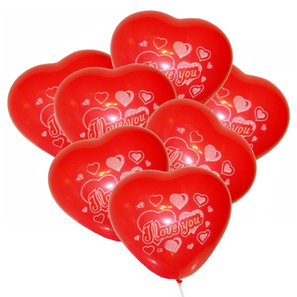 Група от 7 латексови балони във формата на сърце и надпис "I Love You!", вълнуващ подарък за празника на влюбените!