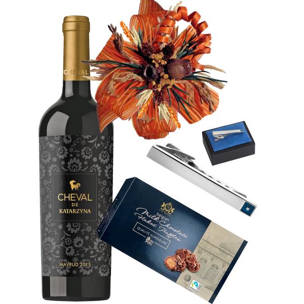 Tie pin, wine and candy - Men's gift idea