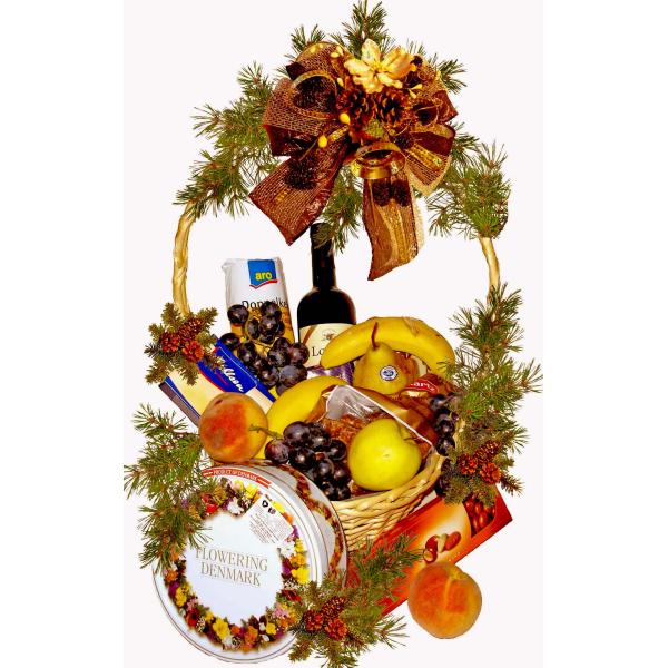 Коледна кошница с бисквити и плодове съдържа: