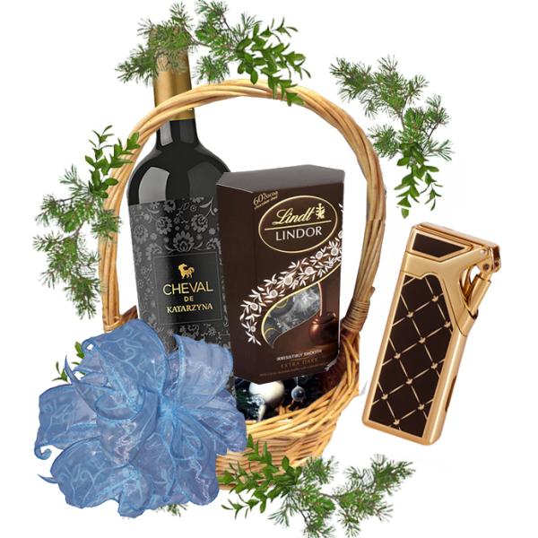 Men's gift for a special occasion in a basket with wine and candy - a stylish and complete surprise that combines taste, class and attention to detail. The composition includes selected wine and quality candy, beautifully arranged in an elegant gift basket.